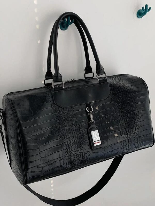 • Geometric Embossed Large Capacity Duffel Bag With Bag Charm