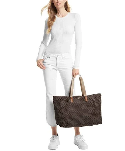 • packable tote features a spacious design, chic logo details and a removable pouch.