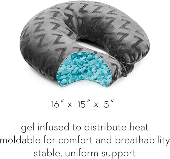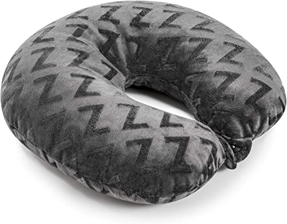 Oversized travel neck pillow with button front – great for airplanes, cars and other travel – 16″ x 15″ x 5″ – 3 year